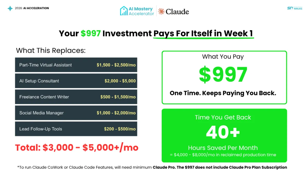AI Mastery Accelerator: $997. 1/2 upfront and 1/2 at the end or the accelerator.